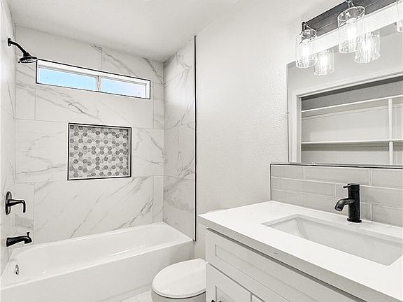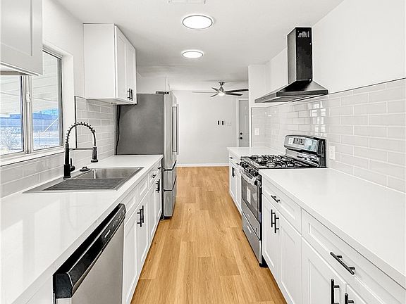 This fully remodeled 3-bedroom, 2-bathroom home offers 1,220 square feet of beautifully updated living space on a generous 0.35-acre lot, large enough to store all your desert toys or to build an ADU. Freshly painted throughout, the home boasts brand-new vinyl flooring in every room, with stylish tile accents in both bathrooms. Both bathrooms have been completely renovated, featuring elegant tile showers with tubs, modern vanities with chic tile backsplashes, and brand-new toilets. The home is equipped with new ceiling fans and recessed lighting, creating a bright and inviting atmosphere throughout. The stunning kitchen has been thoughtfully redesigned, showcasing crisp white cabinetry, a striking tile backsplash, and a large kitchen sink. Stainless steel appliances—including a dishwasher, refrigerator, stove, and range hood with sleek black hardware—add both functionality and style to this beautiful space. Outside, the expansive yard is perfect for entertaining, offering ample space for gatherings, outdoor activities, or simply enjoying the peaceful surroundings. This home combines modern updates with stylish finishes, making it the perfect place to create lasting memories. Schedule a showing today.