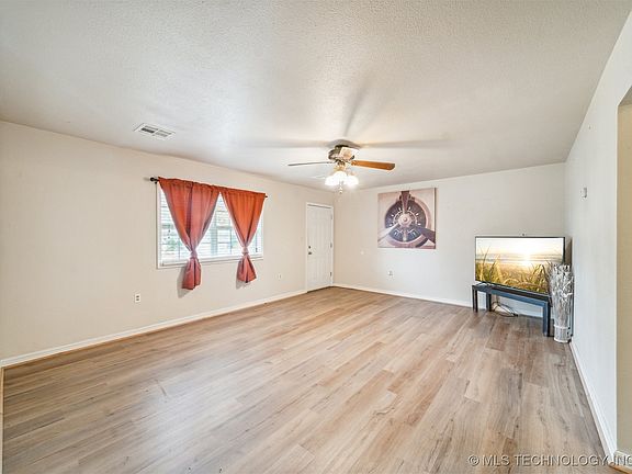 Welcome home to 1,900 s.f., two living areas, a 23x23 deck, extra-large backyard with privacy fencing, pecan trees, and a double bay shop with alley access! Crisp and clean with new flooring in 2023. French doors, modern windows and siding. New roof in 2018. Nice, quiet setting just off Route 66, minutes from Grand Lake, Will Rogers Turnpike, and North Park. Don't miss out on this fantastic find! Agent related to seller.