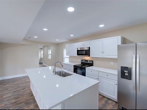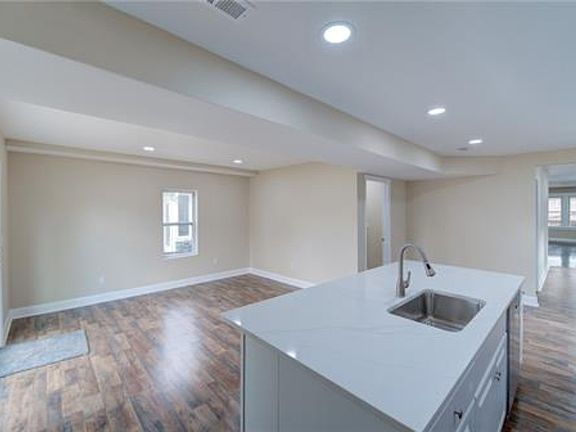 This 4 bedroom 2 bath home will surprise you with its roominess and spacious feel. From its unique front porch design with built-in seating to the entertainment-friendly kitchen layout, you will find this home will be the place you're glad to come home to and spend time with friends as well. Refinished hardwood flooring in the living room gives way to VPF flooring in the kitchen featuring every thing new including stainless steel sink and fixtures range, microwave, dishwasher and French-door fridge/freezer combination. The convenient kitchen island lets you work and entertain guests with its open plan design. An enclosed laundry room just off the kitchen offers the ultimate convenience. Sliders allow access to the backyard patio making this kitchen/dining/entertaining area a perfect summertime hang-out. Lots of recessed lighting brightens the entire first floor. 2 bedrooms and an new bath complete the first floor. Upstairs, a new-addition en-suite master bedroom and fourth bedroom give this home so much family space. Tastefully decorated in crisp white and soft neutral tones, you'll find this home will complement your furnishings and make your move that much easier. North of St John Avenue, close to freeway access, Budd Park swimming pool, the Concourse Fountain, Kansas City Museum, River Market and downtown.
