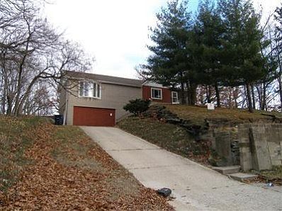 Unique in style is this spacious 2 bedroom home with a full basement and former one car garage that could be converted back. Situated high on a hill and half an acre yard. Dining area off kitchen and additional space in L-shaped livingroom.