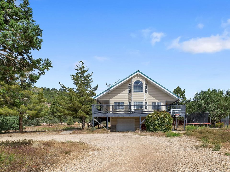 Imagine waking up every day to stunning views of the Pine Valley Mountain from your extra large wrap around deck. This serene valley in Central is the perfect setting for enjoying quiet & peaceful living. The inside of this home has recently been entirely revamped with all-new carpeting and luxury vinyl plank flooring throughout, and a new kitchen with quartz countertops, plus extended counter space for added bar & seating area. Not only that, but notice the old storage/craft room transformed into a warm and cozy family room, complete with new walls and shiplap. The entire house was recently re-plumbed in 2022 to ensure top-notch functionality. With a large .45 acre lot, this home offers plenty of outdoor space for you to enjoy all seasons. Come check it out & make this your dream today!