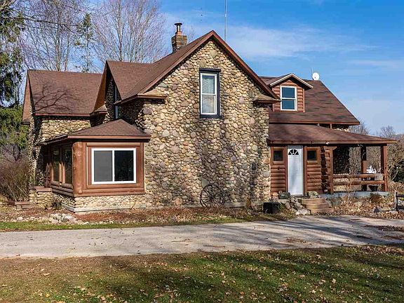 This log and stone home has 4 bedrooms and 2 full baths. Character is what this home is all about. Beautiful wood floors mixed with tile to give it a little bit of an updated feel. The kitchen is french country, and the formal dining room is very inviting with a wood burning fireplace. It has a glassed in front porch of 8x24, that gives an additional living space during the summer months. The master bedroom is on the second floor and has a wonderful walk in closet. The second bath upstairs has a claw feet tub for soaking. This home makes you feel like you are at your own private retreat. As you venture outside you will enjoy the work shoppe and additional barns. Included is also a little play house filled with character all its own. All this is secluded by trees running along the fence line to protect you from any noise you might hear from the road.