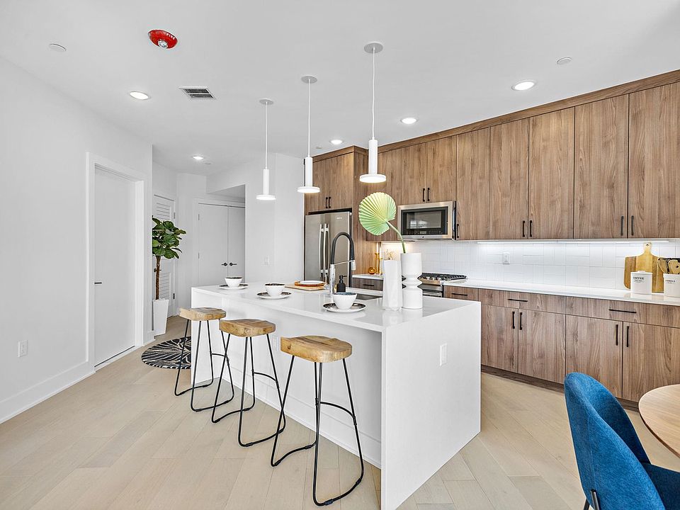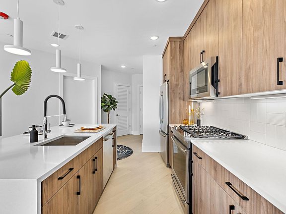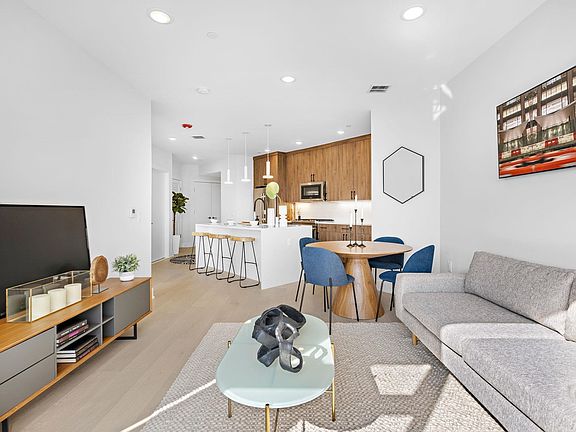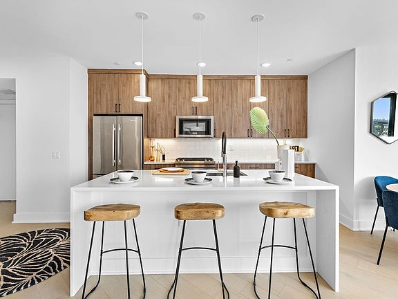 At 338 Newark, one and two bedroom homes cater to modern sensibilities with upscale contemporary conveniences along with layouts that embrace sunlight and views. Unit 602 from the Penthouse Collection features a large kitchen island, perfect for entertaining, plus this home is flooded with natural light from Southern exposure floor to ceiling windows in every room. Throughout each home you will find spacious living and dining spaces accented by white oak hardwood floors and floor to ceiling windows, while gourmet kitchens impress with custom cabinetry and fully vented gas ranges, Caesarstone counters and a suite of premium JennAir kitchen appliances and full size front load LG washer and vented gas dryer. Tranquil bedrooms with oversized custom closets, and spa bathrooms with stylish Kohler fixtures and porcelain tile. This thoughtfully planned elevator building features a wealth of indoor-outdoor amenities, including a fully-equipped fitness center and co-working space, plus a rooftop lounge with wet bar and an outdoor deck with breathtaking views and barbecue grill. We complete the picture with an inviting lobby, Butterfly MX smart-access intercom, package room, stroller and bike storage, and resident storage lockers. Rental parking available 1.5 blocks away. Located in Jersey City’s trend setting Village West Neighborhood, these well-appointed homes deliver designer interiors, exceptional amenities and easy access to the city's best parks, restaurants and transit options.