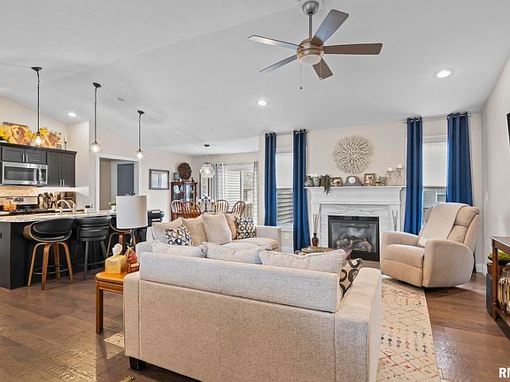 Want 2685 sq ft finished living space in a ranch with the wow factor? Stunning and absolutely immaculate with many amenities describes this 4 bedroom, 3 bath ranch with a 2 car attached garage in popular Chatham. This well constructed ranch has an open floor plan in the kitchen and living room with a cathedral ceiling and engineered hardwood flooring. The living room has a gas fireplace with gorgeous stone & wood surround and a pleasant view of the backyard. Its efficient eat in kitchen has soft close cabinetry, a large island, a pantry, a gas stove, dishwasher, refrigerator, and microwave. Its primary suite is a quiet retreat with stunning double sinks, beautiful mirrors, a large walk in shower, & a large walk in closet. With its split bedroom concept, the other two main floor bedrooms share a full bath. The lower level offers lots of space for entertaining, games, or crafts with a beautiful family room, a spectacular wet bar, & a rec room. The lower level fourth bedroom suite has a bathroom, a spacious closet, and an egress window. There is good storage on the lower level. There is a main floor laundry directly off the kitchen which has a drop zone, and a closet which could be used as a second pantry if needed. The privacy fenced backyard has a patio for outdoor entertaining. Located in the prestigious Chatham School district and quick access to interstate 72 & route 4 this home provides it all. This home is being sold in an "as is" state.