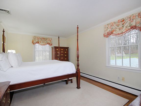 Infused with an understated elegance & distinctive design, this Colonial with pool is renovated to perfection and turnkey ready! The heart of the home is the delightful Gourmet Eat-In Kitchen with top of the line SS Appl's. Adjacent 3-season Sun-Room--Ideal to relax or entertain family/friends. The expansive private backyard showcases gorgeous gunite pool/sun deck. Inside, the stylish DR has a built-in dry bar & a large bay window letting natural light stream in. Adjoining LR has a gas FRPL w/built-ins & sweet window seats. FR is cozy with wood burning FRPL. Effortless flow from room to room. The huge Master Suite has space for a home office, PLUS a private balcony to enjoy nature. Luxurious Master Bath retreat will not disappoint with antique wood floors, claw foot soaking tub & over-sized step in shower. Two additional bedrooms are en-suite with tastefully updated baths! Hardwood floors beautify both the main & upper level. Versatile, finished LL includes a second FR & a practical, fresh, & modern office space. Minimize clutter by storing all your yard & pool equipment in the exterior sheds. Nestled on 2.5 peaceful acres framed by large front lawn this lovingly maintained home is near award winning schools, restaurants, Topstone Park & Mark Twain Library. Close to major travel routes, train & 60 miles to NYC. An ideal country retreat. This home combines the very best of space, privacy & peace whether a weekend destination or full time living. Come take a look.