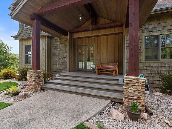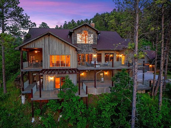 For more information, please contact listing agents Heath Gran 605-209-2052 or Scot Munro 605-641-6482 with Great Peaks Realty. Impressive 6-bedroom home in Mountain Plains II located on a private 9.15-acre lot at the end of a cul-de-sac with sprawling views of the Hills, attached 3-car drive-under garage, plus a detached garage. Inside this custom-built home, you will love the spacious 6,341 sq ft of living space, with the main level featuring a large formal living room with fireplace, expansive kitchen offering dual refrigerators, built-in double oven and gas range stove, huge center island for cooking and breakfast nook warmed by a gas fireplace. Formal dining room steps out onto the back deck that extends across the entire back side of the home offering many separate walkout points making the 3-tiered outdoor space of this home a complete dream! The main level also hosts the primary ensuite with gas log fireplace, double vanity with beautiful rock sinks, tile walk-in shower, relaxing soaker tub and walk-in closet. The upper-level catwalk balcony leads you to 3 additional bedrooms and a full bathroom, plus a sitting room. The walkout basement offers a large family room with a cozy fireplace, sunroom bar area, large bedroom ensuite with full bathroom and lots of storage! This property is so stunning inside & out! You have to see these views as they're unlike any other, the privacy found here and the outdoor decks can't be beat! Call today.