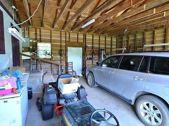Pasture for horses and woods to roam. Pretty property with fencing, pond, storm shelter, barns and other buildings. Home is spacious and clean, updated a few years ago. Hickory laminate flooring, carpeting, CH&A, extra insulation, rock fireplace with pellet stove insert, and gorgeous cabinetry (and lots of them) in the kitchen. Well has filter system. Fruit trees, mountain view and wet weather creek.