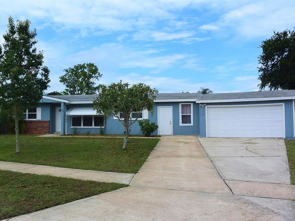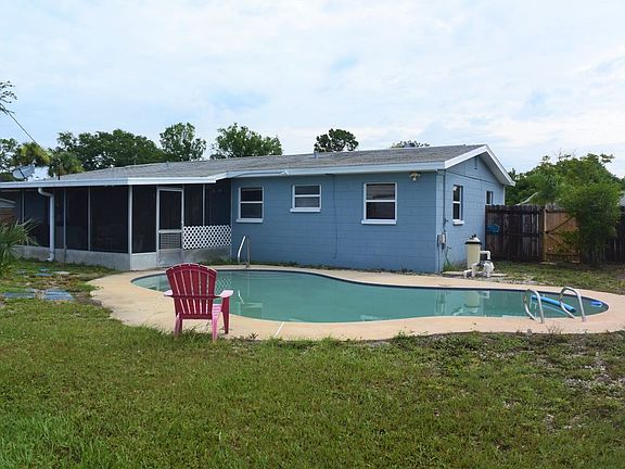 LOWEST PRICED POOL HOME IN PSJ! This 3+ bedroom, 2 bath, 2 car garage home is ready for new owners, with terrazzo flooring throughout. Updated kitchen with new cabinets, matching appliances, and granite counters. Enclosed breezeway from main home to garage is under air, perfect for entertainment flex space or a larger master bedroom suite! Screened porch in back overlooks the refreshing swimming pool and fully fenced yard! Take advantage of the HomeStyle Renovation mortgage to make this home truly yours! Priced to sell quickly!