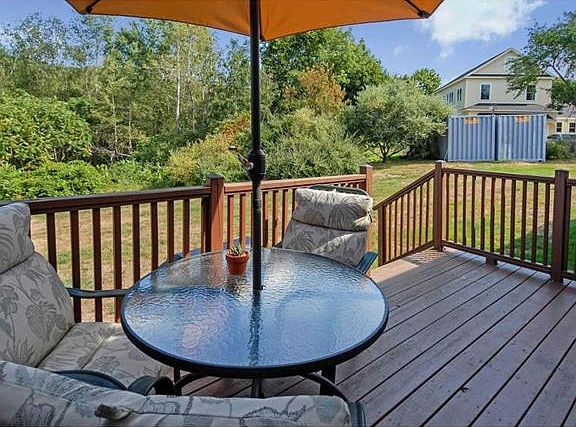 Perfect one level living just minutes to shopping and commuter routes or Downtown Portsmouth! This beautiful 2 bedroom condo includes a master bedroom with en suite 3/4 bath and an additional large bedroom. There is also a full bathroom for guests and both bathrooms have been updated with new vanities and comfort height toilets. Nice oversized kitchen and dining area that open to the sunny living room. Other upgrades include a fully insulated attic and a new 40 gallon water heater and washer/dryer. There is great extra storage space in the pull down attic area or basement with bulkhead access. The large deck off the back offers peaceful views. Beautiful and well managed community with hassle free amenities like snow removal and trash. Great low taxes and HOA fees. Pet friendly association and a move in ready home just waiting for you! Buyer is responsible to pay entry fee to Association at the time of closing of $1,005.