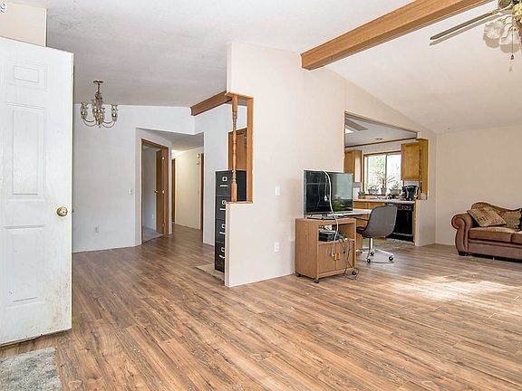 Affordable horse property!!! Nice pasture, 21X24 hay barn, 6 stall horse barn, 3 stall livestock barn, 60 ft round pen, and fruit trees. The home has fresh paint inside and out, new floor coverings, nice master suite, and a 12X16 attached storage or mudroom. Bring your animals and enjoy this country property with mountain views from the covered front deck!