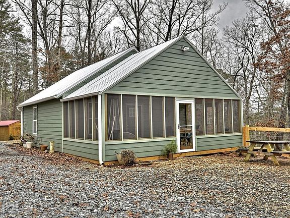 Cute as can be...this cozy one bedroom/one bath cottage is nestled on five wooded acres surrounded by mountain views...tucked away with end of road privacy, nearly all paved access, newly finished and easy to care for with hardi board siding & energy efficient windows & materials, wooded yard is perfect for pets or kids, durable laminate wood floors, light and bright cottage charm interior features spacious & efficient layout, adorable kitchen/dining/living area, ensuite bed/bathroom with large closet, welcoming screened porch is great for relaxing or entertaining, storage building, gentle terrain with noisy creek, potential building sites for multiple properties, and tastefully furnished...wonderful full time or vacation property with plenty of room to roam...great investment for short term rental, potential for additional cabins or structures...endless possibilities and close to historic downtown, Toccoa River & more...a charmer!