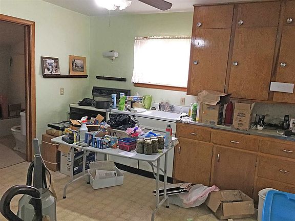 2 bed 1 bath home, gas heating and window air. Main level has an eat in kitchen, with nice sized pantry, full bath and mud room/enclosed porch off it. Larger living room with potential for dining, with one bedroom off it. Detached small one car garage/shed needs some work