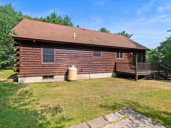 WELCOME HOME!! Meticulously maintained DREAM LOG HOME featuring massive blonde wood BEAMS, on 2.35 acres of land. Enjoy cooking & entertaining in the spacious open kitchen with stainless steel appliances connected to the dining room ready for hosting holidays, parties & more. The OPEN FLOOR PLAN leads to the true heart of the home, immaculate living-room overlooking the FARMER'S PORCH. The farmers porch overlooks the conservation land for a relaxing cool Summer nights! FIRST FLOOR MASTER bedroom with an additional bedroom and finished basement could be used as another bedroom or a HOME OFFICE. Enjoy the backyard that abuts horse stables and 1 mile away from Wallum Lake to go boating for the day! Conveniently located close to roots 395, 290, 90. This move in ready gem will not last!!