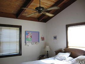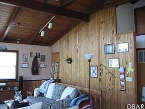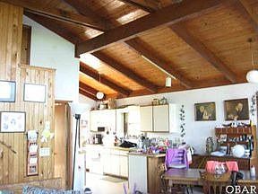Wonderful 4 bedrooms/2 baths reverse floor plan located in Southern Shores yet close enough to walk or bicycle to the town of Duck on the bicycle path. Beach bound? No worries, the public beach access is located right at the end of Hillcrest and the walk is not too long and well worth it. Up for a nature walk, you are even closer to the sound and Hillcrest Park. Looking for a beautiful sunset, just head west! Second home or income producing property? This home is versatile and well suited to both. Ample p arking with two turn around aprons and parking under the house, situated on a 20K+ square feet lot with the most amazing gnarly live oak trees, we were told there is plenty of room to add a pool. No maintenance vinyl siding and an outside shower to wash off that sand, this home offers all you need: lower level dry entry and laundry room, 3 bedrooms, 1 full bath and a nice size mid-level den that walks out onto a spacious deck. The upper floor welcomes you with a master bedroom with juniper paneled vaulted ceilings, ceiling fan and full bath, juniper paneling along the stairs and the beautifully aged wood vaulted ceilings with ceiling fan. Bright and open home with many windows, the spacious top level great room offers 8 windows and 2 sets of sliding doors. Well located open kitchen with a small breakfast bar where you won't miss anything. Walk out onto the top floor deck with a small but lovely view of the ocean and the indigenous trees and plants in the yard. No matter where you look you have a lovely vi ew of the oak trees. This property is located in such a great community and does not require flood insurance. Nice bonus!! The following have been replaced and/or repaired: carpet & padding (Dec. '13), the decks were repaired (Dec. '13), septic system (5 years old), 9 new vinyl clad windows (Dec. '13), heat pump (Oct. '13), sliding glass doors, storm door (recent) and outdoor lighting fixtures (Dec. '13). The seller says the property has never flooded nor was it damaged by previous storms. This is y our opportunity to own a great investment property while values are still low. Can you picture yourself here?
