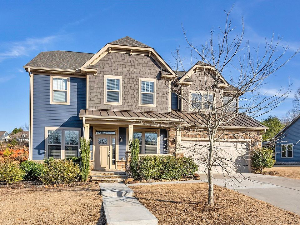 Make yourself at home in this resort-style, mountain view property located in a stunning community complete with rolling terrain, long-range panoramic mountain views and resort amenities (think park, clubhouse, gym, and a sparkling oasis pool). The luxury is in the details of this 5-bedroom, 4 full bathroom, 3,741-square-foot home — from pre-finished hardwood floors/steps, richly real hardwoods, coffered ceilings, extensive crown molding, and square baseboards, this home offers an aesthetically clean canvas that works as the backdrop to any décor palette. The main level includes one bedroom with a full bath, while the additional four bedrooms and three baths reside upstairs. You’ll also find the owner’s suite upstairs, which includes a walk-in closet and a deluxe private bath featuring a double vanity and garden tub. The spacious gourmet kitchen includes sleek black cabinetry, granite countertops, a gas range, and a walk-in pantry. The main level also houses a living space with a gas fireplace; a flex space, the purpose of which can be tailored to suit your lifestyle; and a large mud room located just off the two-car garage. Enjoy spending a little time outdoors? This home has you covered with a craftsman-style covered front porch, beautiful lawn space, screened-in back patio, and a fenced backyard. Call today to schedule a tour — you just might fall in love!