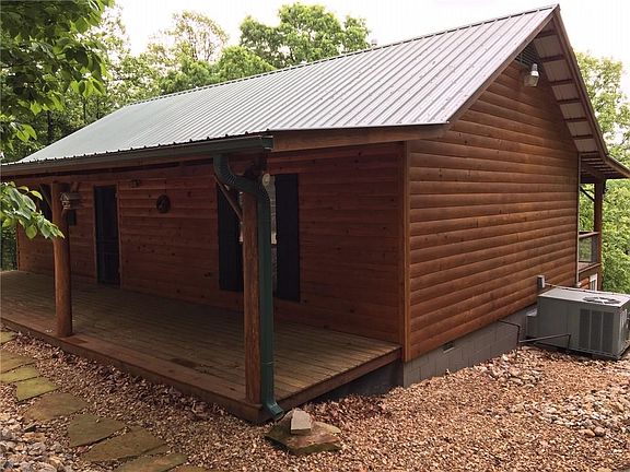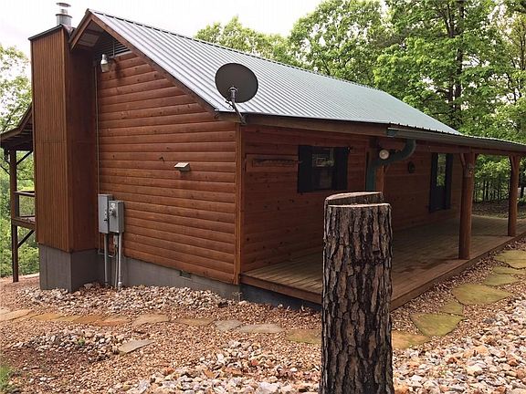Very well maintained Cabin with 10.93 acres. This place is move in ready. 2 bedroom 1 bath with an open floor plan. Vaulted ceiling, ceiling fans, all Appliances convey, C/HA, Wood burning fire place with two covered porches. Carport, view and much more. Solar panel system with an electric bill that is $12 to $13 per month. Yard is landscaped for little or no maintenance. Private, circle drive and close to Eureka Springs and Lake. This home is self sufficient with solar panels and wood burning fireplace