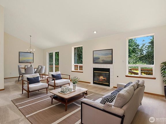 Welcome to this beautifully maintained 3-bedroom, 2-bath home nestled in the serene Shelter Bay community. Enjoy the peaceful privacy of a quiet location with a greenbelt on two sides, enhancing the natural beauty and sense of seclusion. The home features vaulted ceilings, skylights, and a cozy fireplace in a well-designed layout that flows effortlessly to a multi-level, expansive deck—perfect for outdoor living and entertaining. Thoughtfully landscaped with mature plantings for year-round color and curb appeal. Oversized garage offers ample storage with built-in shelves and room for a workbench. Shelter Bay amenities include a newly renovated Pool, Marina, Par 3 Golf, Pickleball, Tennis, Beaches, Parks, and more. Leased land.