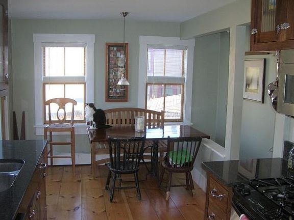 Townhouse style apartment has two bedrooms with skylights, lots of storage and 1 1/2 baths. Laundry located next to bedrooms. Light filled rooms. Large deck located off kitchen overlooking adjacent park. Additional lower level office, Den, or guest room. Tastefully designed unit includes kitchen with mahogany cabinets, Wood floors, Stainless appliances, Granite counters. One block to Thames street and harbor. One block to shopping. Located walking distance to everything. Well cared for three family home with young professionals. One year lease. No smoking. No pets. email is best. Contact for more information. Tenant responsible for utilities (Gas, Electric, Cable, Water & Sewer, etc)