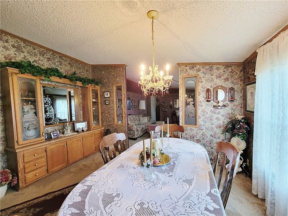 Welcome to this Large, Well Maintained 3-Bed, 2.5 Bath Ranch on 0.81 Acres. As You Enter, You're Greeted by a Spacious Victorian Inspired Decor Living Room. The Open Floor Plan Flows to the Elegant Formal Dining Room with Built-in Cabinet/Hutch. Light and Bright Family Room Opens to the Huge Eat-in Kitchen with Plenty of Counter Space and Large Island. Laundry and Powder Room off Kitchen. The Owner's Suite Boasts a Retreat-like Ambiance with Victorian-style Furnishings, a Luxurious Updated En-suite Bath with Step-in Shower, and Ample Closet Space. Two Additional Bedrooms Provide Comfortable Accommodations for Family or Guests. Over-sized, 2-Car Detached Garage with Tons of Storage Space or Work Shop Area. South Side Area School District. Over 1800 SqFt of Living Space. Easy access to SR168 and SR30. Raccoon Creek State Park, Tomlinson Run State Park and Ponderosa Golf Course Nearby. Pittsburgh International Airport within 30 minutes.