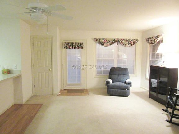 Don't miss the opportunity to own this rare end unit w/screened porch in Avalon Retirement Community. Enjoy this 2 bedroom condo including master bedroom suite & 2 patios. Plenty of room to entertain in the combined Living room/Dining area. The breakfast bar area has pergo flooring. There is a door in Kitchen that leads to the Utility room w/ Stack washer/dryer, water heater, storage & 1-car garage. All rooms have been freshly painted. The condo is being sold "as-is" but offering a $2000 carpet allowance. The low condo fees of $160 per month covers Building Insurance, annual power washing of siding, lawn maintenance & roof, snow removal, small clubhouse & maintenance of common areas. Located near shopping, restaurants, medical facilities, 2 Universities, & 30 minutes' drive to MD Beaches.