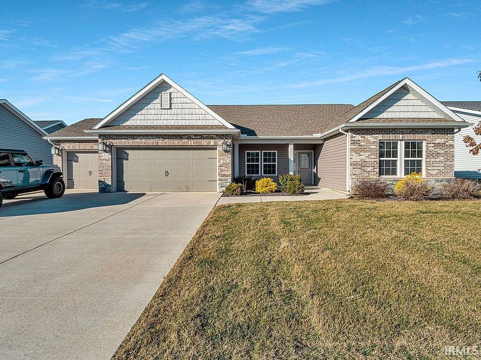 Beautiful Ranch in popular Auburn Meadows in West Lafayette. Covered Front porch is welcoming to guests. Kitchen is beautiful-Grey painted cabinets, staggered cabinetry with crown. Solid surface counter tops, under counter lighting, ceramic back splash, Pantry with shelving unit. Kitchen is spacious with area open to Great Room, Fireplace and Eating area. Master bath includes kitchen height vanity with a double sink. Large Walk in tiled shower, soaking tub. Walk in master closet with upgraded laminate shelving units. Bedrooms, Living Rm and Den have hardwood flooring. Laundry room includes folding table and the Washer and Dryer. Three Car attached garage with service door to back yard. Seller negotiable on leaving furniture and outdoor grill. Smart Technology includes: Simply Safe, Key Access front door, Door Bell, and Thermostat.