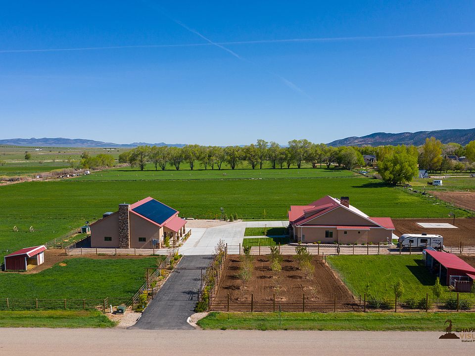 Located just west of Kanarraville. This place has it all! 7 of the total 9.69 acres are irrigated with 180 shares of irrigation water. Main home is 2,500 sq. ft. Built in 2018. Second home is just over 2,000 sq. ft. Built in 2015. Greenhouse, garden, solar panels, horse corral, chicken coop, and so much more! 20' connex with refrigeration unit. Owner may include some equipment and furnishings.