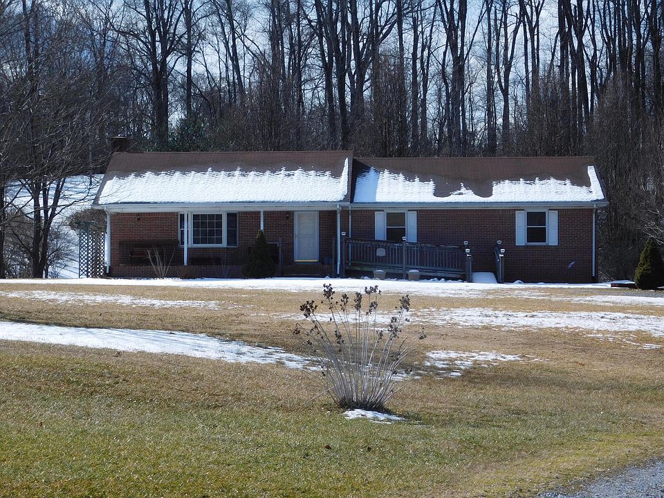 Perfect location and a great house offering 3 BR, 2 BA, open floor plan on 3 acres, Kitchen with lots of cabinets,skylight, ample space for table set or an island. Great room with cathedral ceilings, dining area, gas log fireplace & open to kitchen. Dining area sliders open to huge covered deck and patio below. Hardwood floors throughout upper level. Master BR with master bath and large walk-in closet. Entry level laundry room with sink. Lower level offers Rec room with fireplace w/wood stove insert, and sliders to patio. 2-car garage under and detached workshop w/one car garage-Backs up to Appalachian trail-Separate utility meter for workshop-