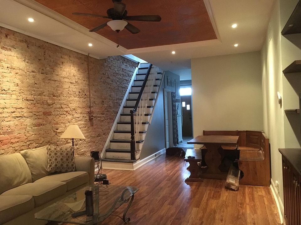 Available February 1st, 2022 - Updated 2 bedroom, 2.5 bath rowhome in the Harwood neighborhood of greater Charles Village. The home was completely updated in 2014 /2015 with amenities including central heat and A/C, dimmable LED lighting in living room and basement common spaces, washer / dryer in basement, extra-tall kitchen cabinets and granite countertops, and a spa-like upstairs bath. On the main level, the eat-in kitchen includes granite countertops, a custom range hood, extra tall upper cabinets and a pantry for tons of storage. The living room has lots of Baltimore city character with a custom built-in entertainment center, pine corner table with bench storage, tray ceiling with copper color ceiling tiles, and an exposed brick wall. There is also a powder room on the main level, and lots of outdoor living and entertaining space between the large front porch and fenced in back yard. The upstairs bathroom includes a double vanity, walk-in shower, and clawfoot soaker tub. Both upstairs bedrooms have reach in closets and spacious layouts (front bedroom 13x14, back bedroom 13x11 with private 4x10 balcony). Large windows in the bedrooms and skylights in the hallway and bathroom provide bright natural light. The basement level is partially finished and includes a common space housing the washer, dryer, and utility sink, as well as the basement bath. The basement level also includes a separate finished space with french doors for an office, den, workout space, etc. The house is pet-friendly with prior approval / inclusion of pets in the lease. The small backyard is fully fenced. Available for showings starting in Mid-January. Amenities - Central A/C - Water included - Hardwood / Tile / Laminate throughout - Fenced back yard - Washer / dryer in basement - High ceilings and lots of natural light - Partially finished basement with lots of room for storage or extra living space - Less than a mile from Johns Hopkins University, only a three block walk to JHMI shuttles. Other city transportation, grocery stores, Peabody Heights brewery, etc. all within walking distance. - Easy access to I-83 and Penn Station - Ample street parking Rent: $1700 Available: February 2022 12 month lease Not furnished (built-in entertainment center and pine corner table in the living room are included) Owner pays for water, renter pays for all other utilities All types of pets allowed, but must be discussed with and approved by landlord on a case-by-case basis No smoking allowed in the house Applications accepted exclusively through Zillow's rental application tool. House will be available to show mid-January.