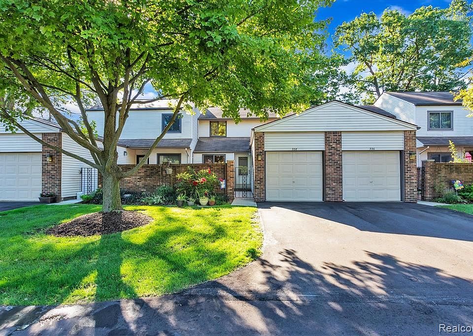 Ideally located near all conveniences, schools and freeways. Courtyard entry with charming brick paver patio for enjoying private entertaining or your morning coffee. Eat-in & updated kitchen with beautiful maple 42" cabinetry, granite counters & stainless appliances. Dining rm. overlooks great room with natural fireplace surrounded by updated brick exterior and hearth. Doorwall to deck overlooking the private treed setting. Second fl. includes 2 spacious bedrooms with recessed lighting and bath with new ceramic tile. Neutral decor. Daylight Bsmt. offers lots of storage. Community offers pool and clubhouse.