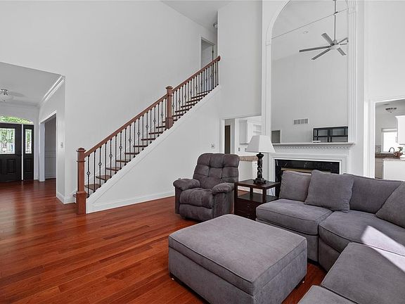 Upon entering into this 1.5 story home you will be greeted by a dining room before you walk to the Great Room with 23' tall ceilings surrounded by windows. Enjoy privacy with the main floor en-suite master bedroom complete with walk-in closet, tub, stand in shower, and a vanity with double sinks. Heading up the stairs you will find the other three bedrooms all with ample closet space sharing the beautifully renovated full hall bathroom. Back downstairs the fireplace ties in the Great room and the kitchen where you will find an open floor plan with stainless steel appliances and granite countertops. Off one side of the kitchen is the main floor laundry leading into the two car garage. From the other side of the kitchen you can access the beautifully landscaped backyard. Spend time on the patio to delight in the peaceful wooded lot in the Spring or head over to the community pool in the Summer.