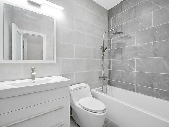 Gorgeously Renovated two family brick home 4 Bedrooms over 3 Bedrooms plus Big Finished Basement with OSE and 3 more rooms. Each Floor has 1 full Bath. Kitchen with Top of The Line, Stainless Steel Appliances and Marble Counter tops, Washer/Dryer Hookup in each Unit. Property has a Central AC. Great Location a Few Blocks From the C & 3 Trains. Must See!