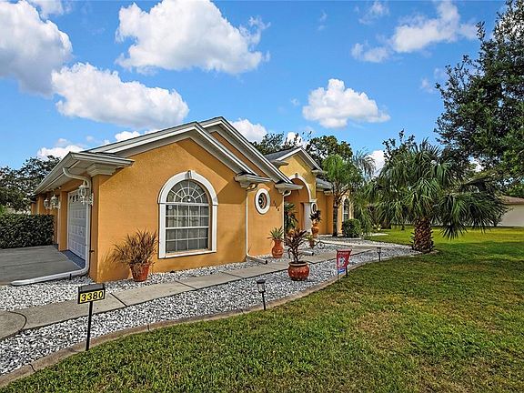Under contract-accepting backup offers. Step into your private piece of paradise nestled in Brooksville's Springwood Estates! This stunning 4/3/3 custom "Martinique Model" home sits on just over an acre of beautifully landscaped property and offers 2,500 sq ft of elegant living space. The moment you walk in, you’re greeted by an inviting open floor plan with a bright living and dining area filled with natural light and accented by a beautiful custom feature wall. The showstopper kitchen has been completely updated with high-end finishes including natural quartzite stone countertops, white shaker cabinets, stainless steel appliances (2021), a walk-in pantry for all your essentials and a large center island with a built-in BEVERAGE FRIG. The spacious family room with soaring 15 ft ceilings offers the perfect spot to entertain family and friends with the large slider opening to the amazing pool and outdoor space. There is plenty of room for a sectional couch and you'll love the charming built-in details. The private primary suite is thoughtfully separated from the other bedrooms and features an oversized layout, a huge walk-in closet and a beautifully updated en suite bath. Two bedrooms are conveniently found off the main living space and are generously sized with large closets, wood flooring, and cozy window seats. The fourth bedroom is toward the back of the home and is an additional ensuite/mother in law suite. Step outside to your own resort-style retreat! The sparkling screened-in SALTWATER pool and expansive covered lanai make this the perfect weekend spot — complete with a misting system, outdoor shower and an AMAZING OUTDOOR KITCHEN featuring propane cooktop, wood burning BBQ pit, sink, refrigerator and authentic brick PIZZA OVEN (bricks brought in from New York!). This home offers true peace of mind with a BRAND NEW ROOF AND A/C and a new commercial-grade water heater. Additional highlights include real wood flooring, crown molding, a water softener, new epoxy flooring in the 3-car garage and a spacious fenced yard with a dog run — perfect for pets, play, or gardening. This home has it all -- style, space, updates and privacy all in a serene Brooksville setting. Conveniently located just off the Suncoast Parkway for an easy commute!