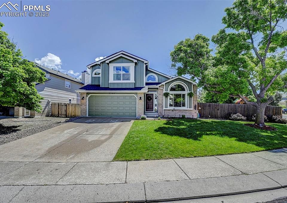 WELCOME to this beautifully maintained home in the coveted BRIARGATE neighborhood and award winning D20 School District! 4 bedrooms, 2.5 bathrooms and Mountain views from the back - this home is delightful! Walk into a bright and light 2 story foyer with a formal living room that adjoins to a formal dining room. The kitchen has been updated with new sink, backsplash, updated cabinets and countertops with a kitchen nook that walks out to the huge deck. The backyard also has a double gate access with a pad for storing your toys! Tons of shade, gardening space and mature trees! The spacious family room has an updated gas fireplace. The two-car car garage is off the main level and has tons of built-in storage, an Insulated Garage Door and a New EV Charging station! Rounding out the main level are a pantry, coat closet, 1/2 bathroom and laundry room (W/D stay) with storage! The partially finished basement has an additional bedroom with two windows (Could be used as a bedroom, office space, workout room, craft space or more). The basement also has additional unfinished space to store all your seasonal items. Heading to the upper level there are 2 good sized bedrooms connected with a Jack and Jill bathroom. The spacious primary bedroom has vaulted ceilings, several large windows (more natural light). The attached master bath has a large walk-in tiled shower, separate soaker tub, double vanity with newer countertops and a large walk-in closet. Home's exterior has been freshly painted (05/2025)! New furnace installed 12/2023, Basement bedroom finished 10/2023, new roof 7/2023 and updated light fixtures throughout! Home is conveniently located near fantastic shops (Target and Shops at Briargate), schools (D20), parks (John Venezia), restaurants and military installations.
