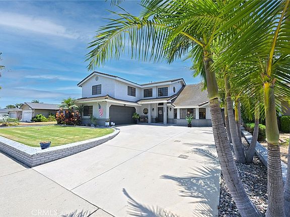 Experience Grand Living in Brea – Your Entertainer’s Dream Home! Welcome to this stunning custom-built Brea residence featuring 5 bedrooms, den and 4 bathrooms across 3,372 sq ft of thoughtfully designed living space, all on a spacious 7,284 sq ft lot with a sparkling pool and spa. Step through the elegant double doors into a dramatic entryway with soaring ceilings and a beautiful chandelier. The living room features a brick fireplace with gas logs, vaulted ceilings, rich hardwood floors, and custom window treatments. The open-concept design flows into the family room with recessed lighting, ideal for gatherings.The gourmet kitchen is a showstopper—quartz countertops, a large island with bar seating, farm sink, subway tile, and high-end stainless steel appliances including a 48-inch Z-Line six-burner stovetop with griddle and double oven, vent hood, built-in KitchenAid fridge, LG dishwasher, and butler’s pantry.Downstairs includes a full bedroom with recessed lighting and mirrored closet doors, plus two beautifully remodeled bathrooms. One bath offers a walk-in tile shower with mosaic inlay and seamless glass doors, the other features marble countertops and a tub/shower combo. A secondary laundry hookup is also available on this level. Upstairs, discover a cozy sitting room with custom lighting and an adjacent storage room with sink and counters. The private primary suite offers crown molding, a ceiling fan, French doors to a balcony, and a luxurious en-suite with Jacuzzi tub, tiled shower, dual vanities, and mirrored closets. Two additional upstairs bedrooms are spacious and well-appointed. A separate office/den with French doors also opens to the balcony. The multi-purpose laundry room includes solid oak cabinetry, utility sink, and a built-in desk—perfect for crafts or projects. Enjoy the backyard oasis with a fully remodeled diving pool and spa (2025), energy-efficient heater, and a 24x16 patio cover with recessed lighting and dual fans. The built-in BBQ island, vinyl fencing, and RV parking with hookups complete the outdoor amenities. This home offers energy efficiency with dual-pane windows, luxury vinyl flooring, dual HVAC units, a newer electrical panel, and an onwed and fully paid-off solar system (29 panels). Additional highlights: double-insulated interior walls, solid oak doors with Baldwin hardware, enclosed dog run, and no HOA or Mello Roos. Located in the coveted Golden Elementary School District (GATE program).