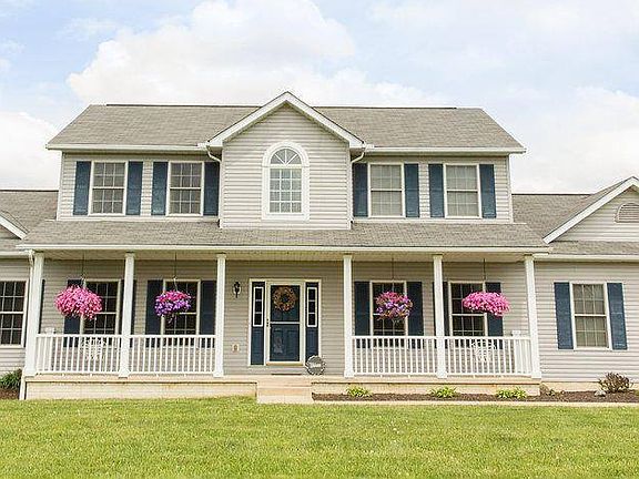 Home SUITE Home! Master suite on first floor and 2 bedroom suites upstairs include full baths and walk in closets! Home is situated on 6.47 acres and includes an upground pool and 4 car detached outbuilding with car lift. Full 9 ft basement, storage shed, Delco water, electric transfer station. Home has been meticulously cared for and is anxious to welcome it's new owners!