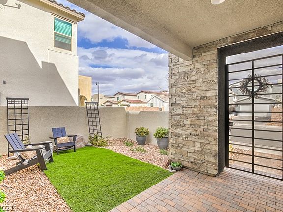 RARE OPPORTUNITY FOR A NEVER LIVED IN LINEA MODEL BUILT 2020 by Pardee/Tri Point. Move in ready w/ TONS of upgrades.Modern Desert Contemporary w/ gated front courtyard + artificial turf & sitting area.UNOBSTRUCTED MOUNTAIN REAR YARD VIEWS w/ Viewing fence (was larger than model home)perfect POOL LOT! $9,000+ GE Stainless appliances,dbl oven,maple shaker chestnut cabinets,vanilla noir stone counter,blk hardware,Delta Trinsic matte faucet & under mt sink.ALEXA Smart home fans,island light LED pendants, mirrored master closets,NEW Whole house water filtration,wter softener, reverse osmosis,NEW Marble epoxy garage floor,LED pendant island lights, contemporary great rm 56" -3 blade fan,blinds cordless roller shades,horizontal window blinds,upgraded covered patio, upgraded tile floors, RING,garage ceiling storage racks.Community center,heated pools,splash area,ball courts,amphitheaters,picnic areas,parks,Farmers Market, yoga.Minutes to golf + top-rated schools, 15 Minutes 2 The Strip
