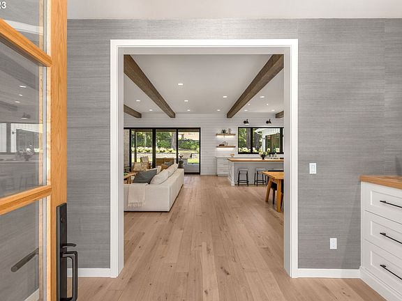 This luxurious one-level Modern Farmhouse ranch sits on a flat and private half-acre in sought after Vista Hills. This 2022 construction by premier builder, Grove Development is on the market for the 1st time. You'll be mesmerized by the details, the incredible natural light in every room, and the custom craftsmanship.The open-concept layout effortlessly connects the living, dining, and kitchen, creating an inviting ambiance for entertaining and gathering. Culinary enthusiasts will delight in the top-of-the-line Blue Star and Sub-Zero appliances, ample storage, and a generous center island with seating, marrying both style and functionality. The oversized windows and high ceilings flood the interior with natural light. The home is designed to create a seamless transition between indoor + outdoor spaces with floor-to-ceiling sliding doors, encouraging four season PNW outdoor living under a covered, heated patio with a gas fireplace, perfect for relaxation and al fresco entertaining. A thoughtfully designed backyard oasis offers a flat, private and expansive escape with both new and full grown landscaped trees, flowers and hedges plus a state-of-the-art custom jungle gym. With no convenience spared, the three-car garage connects to the home?s mudroom.The spa-like primary suite boasts a spacious layout, a close-by office, a large walk-in closet and an ensuite bathroom featuring indulgent amenities, creating an atmosphere of relaxation. Two additional bedrooms share a jack and jill bathroom, with a third bedroom just down the hallway.While providing the utmost seclusion, this new luxury Modern Farmhouse is a dream for buyers looking for a Portland address with WaCo taxes, highly ranked schools and easy access to Downtown Portland, Nike, OHSU and Intel.