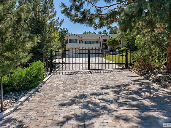 Old Southwest Reno Charmer, located in the popular Southampton Estates just below Caughlin Ranch. This privately gated home is nestled up on the hill with city views filtered by trees during summer and unfiltered views in winter. Sitting on a little over half an acre, no expense was spared on the sprawling landscaping including a beautiful water feature, paver patio, gas fire pit, and mature trees lining the property. There is a beautiful full city view from the dining room., The recently remodeled kitchen leads into the welcoming family room which features a nostalgic red brick, wood-burning fireplace. 3098 sqft of living space with a 707 sqft unfinished basement that is fantastic for storage. The property's paved driveway has plenty of room for your RV/Boat parking on the side of the home. Sellers have owned the home for over 20yrs and have done numerous upgrades over time. New roof, stucco, bathroom remodels and flooring.