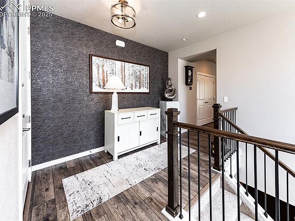 Exceptional value! Best price anywhere for a home of this caliber!! Gorgeous paired patio ranch plan home with 4 beds, 4 baths, and 2 car garage, in desirable Lexington Crossing at Briargate. Home sits on a corner lot of a cul de sac with plenty of curb appeal! Fully landscaped with attractive stucco exterior and rock accents. A covered porch entry leads to the front door. Inside. the home is bright and open with many recent upgrades and high end touches. Off the main entry, there is a bedroom (or office) and a full bathroom. The updated kitchen features lots of pewter glazed cabinets with crown molding, stunning granite counters, stainless steel appliances and gas range, along with huge double door kitchen pantry closet. The dining space walks out to the covered patio with iron fencing and convenient gate to green space. The living room features a cozy gas fireplace with stone face & wood mantle, built in storage, and lots of natural light. The primary bedroom is a very generous size with tray ceiling, ceiling fan, lots of windows, and has a barn door entrance to the attached bathroom with double sinks and tiled walk in shower. Large walk in closet is located off the bathroom. Just down the hall is the main level laundry room, conveniently located near the primary bedroom and next to the garage entrance. Downstairs, the finished basement includes high ceilings, a wet bar, 2 more good sized bedrooms, 2 more full bathrooms and a large family/recreation room. This home has it all! Perfect location in D20 school district, close to everything, main level living, central AC, fenced back patio, and so many high end updates! Additionally, a brand new, class 4 impact resistant roof was installed in 2023!