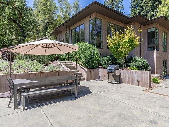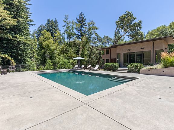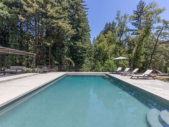 This deluxe modern home is located in a serene 10 acre setting, with beautiful redwood trees and a seasonal creek. The property is situated at the apex of two gated private roads, where hours can pass without a vehicle going by. Chances are you will see --depending on the season hawks, deer, heron, turkey, and the occasional fox. This spectacular home, built in 2016, offers 4 bedrooms, 3 with queen sized beds, and a primary suite with a king sized bed.