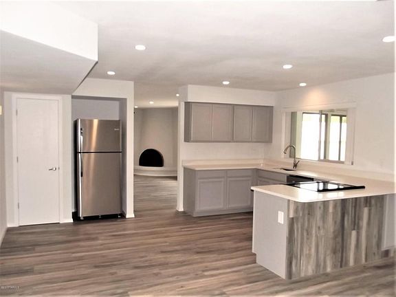 Tastefully updated masonry home on cul-de-sac street awaits a new owner! Range priced from $189K-$194,900. Stunning kitchen w quartz counters, new cabinets, NEW SS appliances (incl fridge), & SS undermount sink w brushed nickel faucet; NEW vanities, sinks, & toilets in both baths; NEW ceiling fans in living areas & all bedrooms; NEW flooring & interior paint throughout; Rear patio is enclosed as AZ room w two NEW doors; Garage is 22' deep with workshop & laundry room behind it; Back yard features storage shed, gas fire pit, gas stub for BBQ, mature orange, tangelo, & grapefruit trees, & double gate access to store toys or RV - no HOA! Raised front yard w low fencing & mountain views; Newer furnace in 2011 - this house is move-in ready!