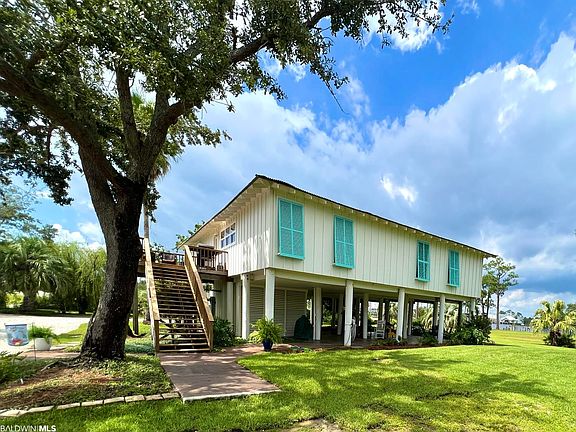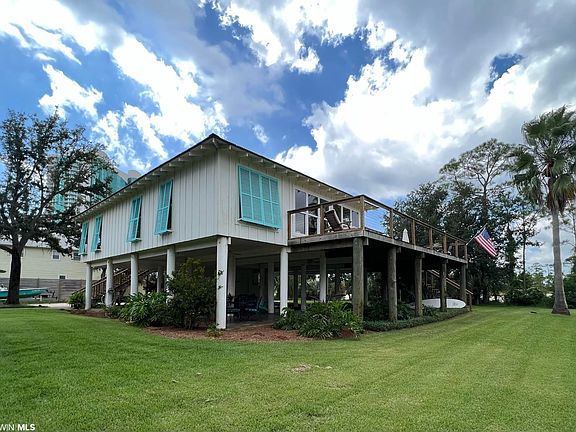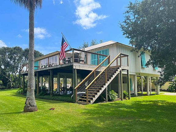 Relax and unwind in this raised beach vacation get-away with stunning views of Cotton Bayou. Located in a highly sought after area of Orange Beach, this 2204 sq.ft., 3-bedroom, 2.5-bath home features a vast ground level retreat with a spacious sitting area perfect for lounging and entertaining that includes a storage closet and a bathroom with an outdoor shower. The open floorplan and floor-to-ceiling windows in the main living area allows for spectacular views from almost every room. Enjoy your morning coffee or evening cocktails from the open-air back deck. The kitchen features an eat-in island with custom quartz countertops, subway tile backsplash, and stainless appliances. The primary bedroom boasts a large sitting area and wall-to-wall windows with views of Cotton Bayou. The over-sized primary bathroom is in a class of its own with double vanity sinks, sitting area, a soaking jetted tub, and a separate shower with a rain shower head, removable shower handle and a multi-function shower panel with ten body sprays! The two guest bedrooms are joined by a full-size bathroom and a shower-tub combination. This home has ample parking for boat storage and multiple cars. This tucked away private location is just minutes from all Orange Beach has to offer from shopping to marinas, restaurants, and entertainment. It’s also located 1.5 miles to the nearest public beach area so you can enjoy access to both Cotton Bayou and the sugar-sand beaches of The Gulf of Mexico.