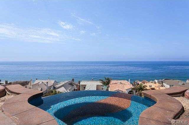 OCEAN VIEWS!!! Panoramic sit-down ocean views from almost every room in this beautiful Santa Fe inspired home. Sprawling single level floor plan with 4 bedrooms and 2 guest suites. Enjoy the mosaic tiled pool in the front yard and gorgeous infinity edge spa overlooking the blue Pacific. Located within the quiet ocean front community of Niguel Shores with numerous amenities including direct beach access and beach parking for residents only, a large clubhouse with olympic size pool, spa, tennis and more. This home is one street up from ocean front and enjoys spectacular Catalina Island views.