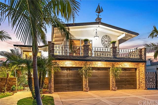 SPECTACULAR OCEAN VIEW home. This home is truly one of a kind. It has been meticulously maintained and upgraded by the current owners. Spectacular gorgeous custom mill work throughout such as wainscoting, crown molding,tongue and groove ceilings and custom oak staircase. There is not another home on the market like it! Located on one of the best streets in the Lantern Village with panoramic ocean, white water and city lights/hills views. 3 OCEAN VIEW entertaining decks with views from San Clemente Island to Cottons. Upper level (reverse floor plan) features gourmet kitchen with double oven, center island and built in bar made with custom maple cabinetry. The family room and dining room are open concept and all rooms have amazing ocean views. Large master en suite with beautiful custom vaulted ceilings, large master bath with double sinks a 2 person jacuzzi tub and spacious enclosed glass rain shower. Ocean view wrap around deck off of master and family room. Lovely main level entry features luxury plank flooring, 2 spacious guest bedrooms and a large main level master en suite. The bathrooms have all been built with the finest materials. Large, sunny main floor family room with sit down ocean views. The lower level features an attached casita and a large basement/mechanical room (unusual for Dana Point homes). Possibilities are endless for the casita, use as bedroom/retreat, guest suite, mother in law /office or rent it out for additional income. There is a new roof, fresh exterior paint, vinyl cased double paned windows, new central AC, upgraded furnace system which adds moisture (no dry heat), whole house soft water and reverse osmosis system, surround sound and exterior is wired with eight cameras. 3 sets of washer/dryers (one on each level). ABUNDANT storage inside and out. There is a lower level workshop and decent amount of ground level outside storage on side of house. The yard features a myriad of fruit trees including avocado, plum, apple and citrus trees. ONE MILE to DANA POINT HARBOR. Just blocks from downtown Dana Point with its vibrant shopping and restaurants including a large Saturday farmers market. HURRY this is a great value. See video.