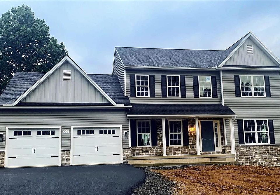 What a Peaceful setting for this beautiful new construction home in East Penn SD. Enter and find a dramatic 2-story foyer flanked by a formal dining room and living room, The Kitchen features stainless steel appliances, Quartz counters, subway tile, a large center island with pendant lights & a walk-in pantry. A breakfast rm/dining area with slider to back yard leads to a spacious family room with a propane fired fireplace. Upstairs are 4 generous bedrooms. The master bedroom offers a great bed chamber, sitting room and enviable walk-in closet. Attached is a master bath with stunning tile floors & shower, large double vanity and plenty of linen storage space. A convenient 1st flr mud/laundry room with outside access is adjacent to a large 2-car garage with upgraded overhead doors and power openers, The full unfinished basement with outside access and 2 windows is insulated and ready for a future finish., All on over an acre that feels like personal park land.