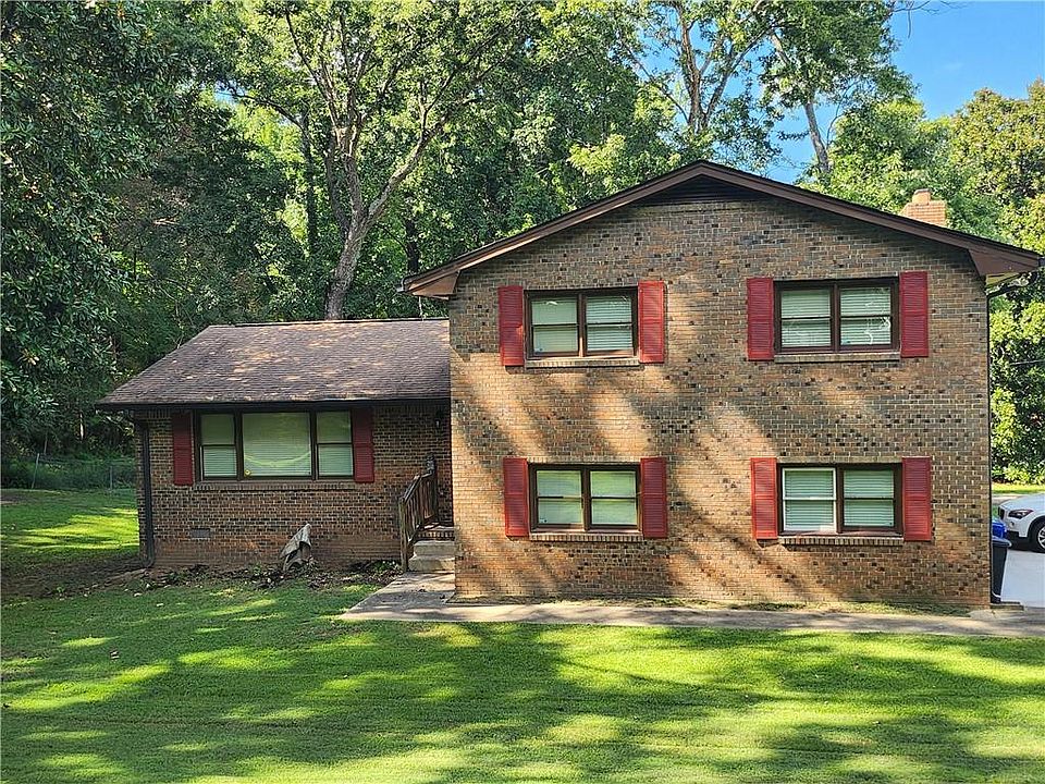 Picture this- a charming 4-bed, 2 bath, 2.5 story move-in ready home on a large corner lot, wrapped in brick. It has a side-entry 2 car garage and a spacious deck on the side accessed from the great room. This slightly more than a half acre property already has curb appeal . Inside is a tastefully updated kitchen and bathrooms, gleaming hardwood floors, a built-in wine rack, and a great room with a brick fireplace that cascades along an entire wall. Granite countertops in the kitchen and bathrooms have already been been added, so the home is ready for any other updates desired by the buyer to make it their own. Plus, there's a hall laundry closet with additional space for storage. The level yard is the perfect finishing touch. Don't overlook the additional garage / workshop with power located in back of the home that would make the perfect ADU. This home is perfect for a first-time buyer, or for a family that needs the space to be comfortable at over 2,000 square feet! Home is being sold as is. This home is convenient to I-285 and located within close proximity to both Atlanta and Decatur.