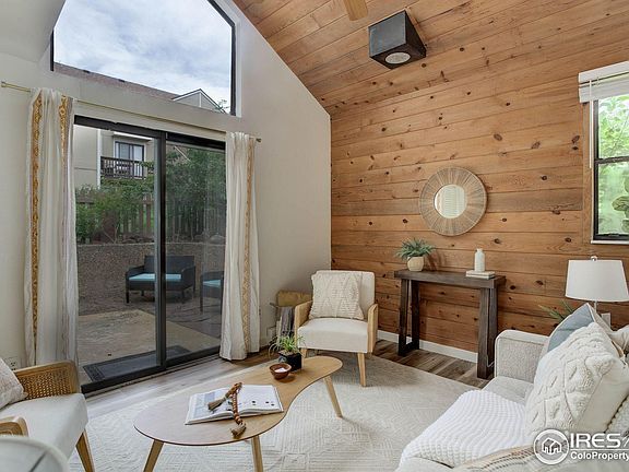 Discover the perfect blend of tranquility, convenience, and style in this beautifully updated Shanahan Ridge condo. Tucked into one of Boulder's most peaceful and desirable neighborhoods, this home offers unmatched access to South Boulder's vibrant commercial district, scenic trails just steps away, and effortless commutes to Downtown Boulder, Denver, and Golden. Inside, the thoughtfully designed layout balances efficiency and comfort. Abundant natural light fills the space throughout the day, creating a warm, inviting atmosphere. A stylish 2021 renovation elevated the home with new wood flooring, modern kitchen cabinetry and counters, sleek appliances, overhead lighting, and the addition of a custom pantry for enhanced storage. Soaring, beamed ceilings in the living room create a bright and airy ambiance. The secondary bedroom would make an excellent home office. The primary bedroom is spacious and bright. Step outside to a private, secluded patio-your own slice of serenity, perfect for outdoor dining, gardening, or savoring Colorado at nightfall. The Shanahan Ridge community is a true gem with friendly neighbors. Residents enjoy access to a pool, a well-tended community garden, and some of the best dog-walking and running trails Boulder has to offer. This is Boulder living at its finest-peaceful, connected, and ready to enjoy.