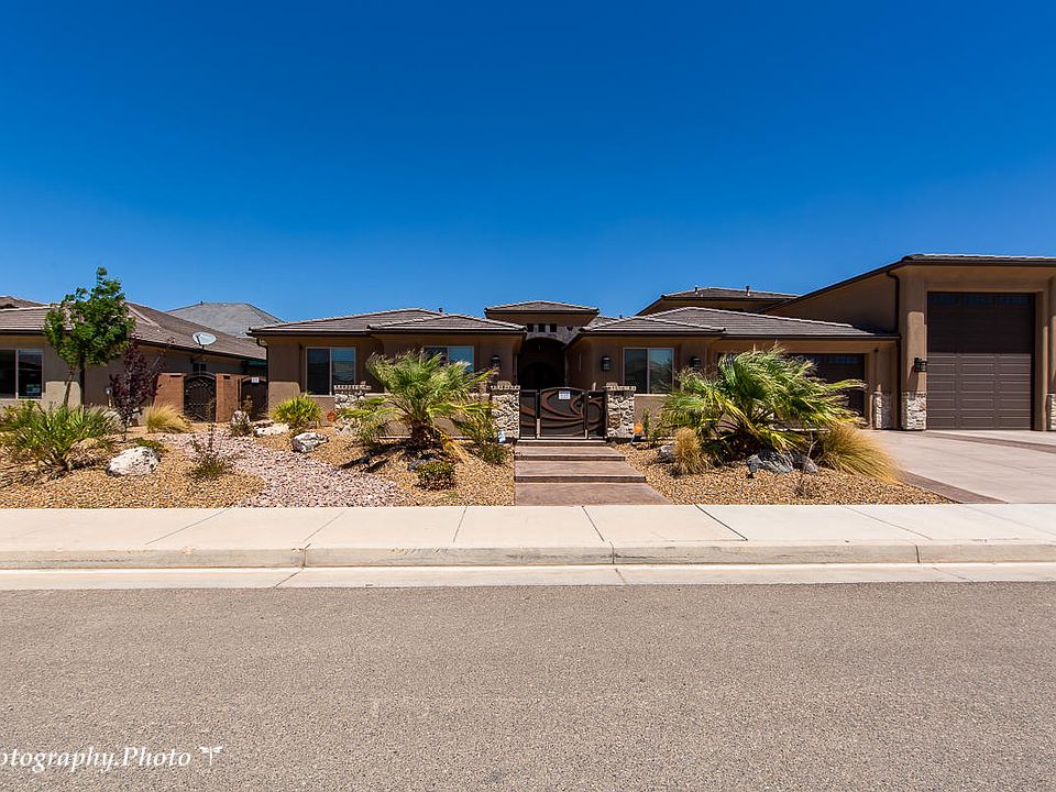 Gorgeous home w/RV Garage, RV Parking & Private Pool! No HOA & Dixie Power. Unbeatable! Beautiful finishes inc custom cabinetry w/hidden pantry, granite, stone flooring & tub/shower surrounds, upgraded fixtures & more! Separate En Suite in addition to casita space. RV Garage measures 15' W x 49' D w/door 12' W x 14' Tall. Most Furnishing Included! Quiet & Serene Subdivision! Call today!