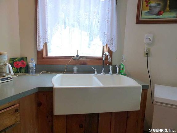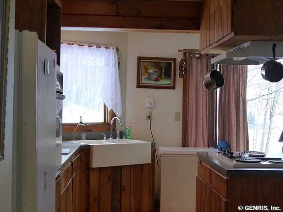 Cozy,comfortable and a great Keuka Lake view decribe this year round get away.Natural light through the large windows,pine plank flooring , plenty of cupboard space, a great farm sink with kitchen Island and an open floor plane.A pellet stove in the living room helps with the heating bills and adds to the atmosphere in this beauty. 2 nice sized bedrooms and a full bath with claw foot tub and shower round out this efficient floor plan.Out side you will find an Open deck at front and rear and a Storage building in a mature land scape. Great weekly rental potential here or stay year round!!!