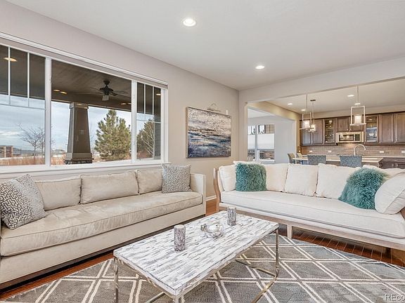Views, views and more views! Fantastic 4 bedroom, 4 bath home with open floor plan, large kitchen with large extended Quartz island. Upgraded stainless steel appliances ,double oven, gourmet kitchen, gas cooktop, French door refrigerator, single undermount stainless steel sink and upgraded gray wash Cabinets. The home boasts many upgrades including handles on cabinets, extra lighting in kitchen, including upgraded large pendant lighting, backsplash in kitchen and extended sunroom can be used as extra dining room. Dining room table and chairs included. Top down bottom up shades with extraordinary views out the back of the home. Upgraded custom roller shade over the patio sliding doors, covered back deck with fenced in yard adjacent to new Thunder Vista K-8 School. Large walk-in pantry. Side garage door in large two car garage. Cathedral ceilings in dining room, wrought iron railings ,designer lighting in hallway and large loft on second level. Four large bedrooms with one en suite, 2 have a jack and jill bath and 5 piece master bath with designer surround tile and built-in closet organizer system. Extraordinary view off of second level .Unfinished Basement has large open floor plan and is pre-plumbed for additional bath. Radon mitigation installed.